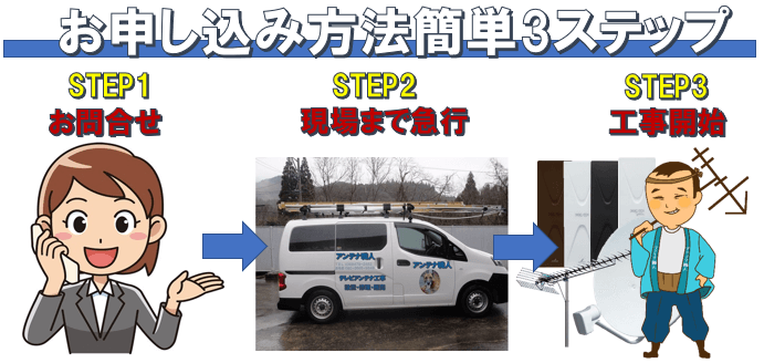お気軽にお問い合わせください。アンテナ職人 TEL 090-3665-9348  営業時間 08:00~21:00 (年中無休)