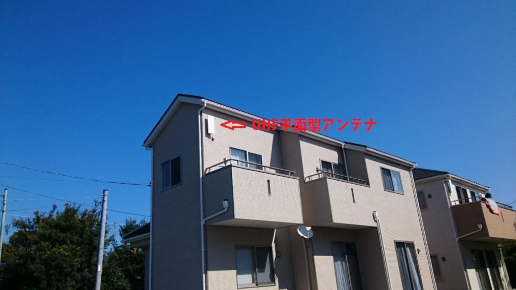 最近、新築のお家に特に多いのですが平型アンテナがとても人気です。壁に取り付けるため、取り付けの向きによっては強風にさらされる心配がありません。